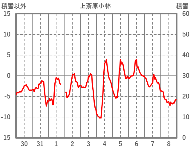 | 日 | 時 | 気温 | 降水 | 風向/風速 | 日照 | 積雪 | 降雪 |