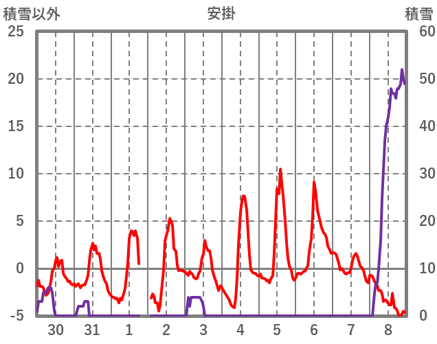 | 日 | 時 | 気温 | 降水 | 風向/風速 | 日照 | 積雪 | 降雪 |