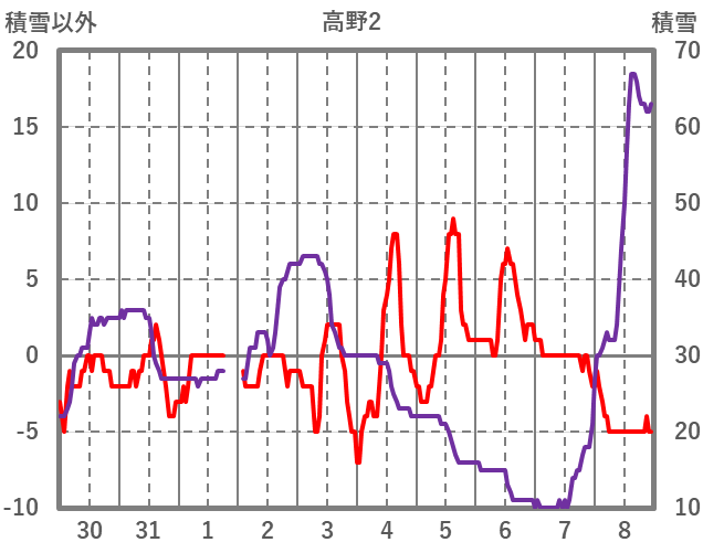 | 日 | 時 | 気温 | 降水 | 風向/風速 | 日照 | 積雪 | 降雪 |