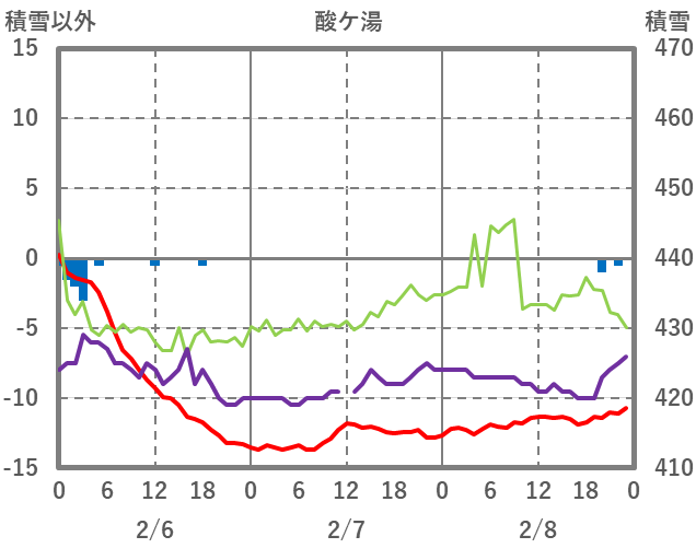 | 日 | 時 | 気温 | 降水 | 風向/風速 | 日照 | 積雪 | 降雪 |