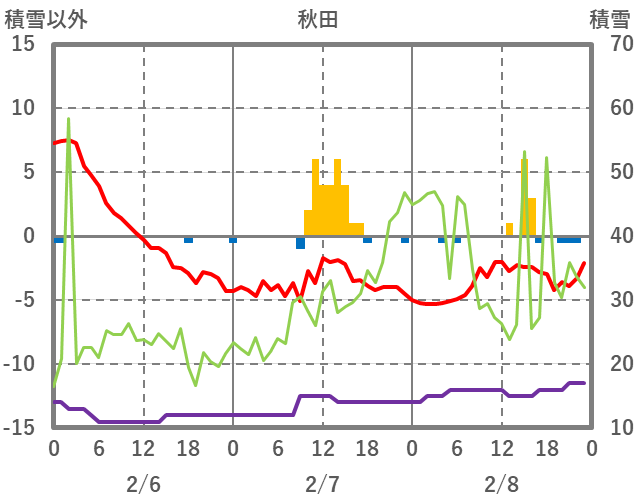 | 日 | 時 | 気温 | 降水 | 風向/風速 | 日照 | 積雪 | 降雪 |