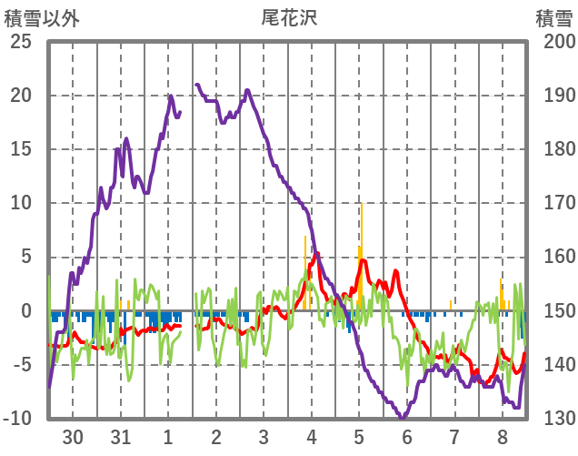 | 日 | 時 | 気温 | 降水 | 風向/風速 | 日照 | 積雪 | 降雪 |