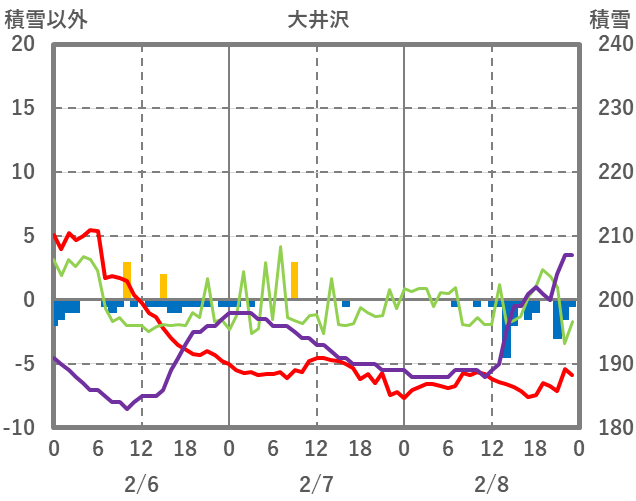 | 日 | 時 | 気温 | 降水 | 風向/風速 | 日照 | 積雪 | 降雪 |