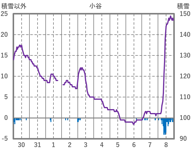 | 日 | 時 | 気温 | 降水 | 風向/風速 | 日照 | 積雪 | 降雪 |