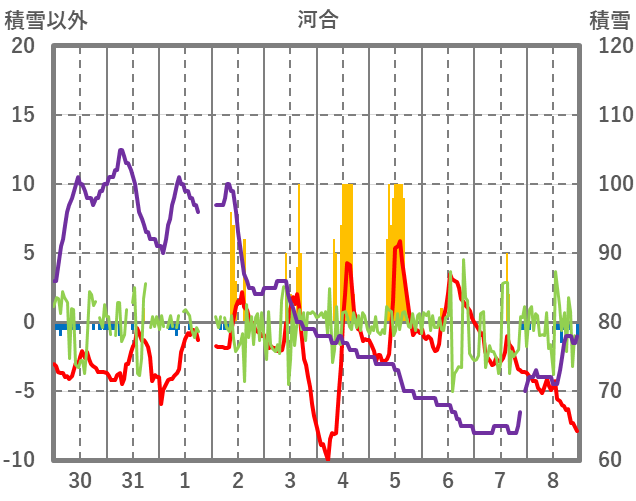 | 日 | 時 | 気温 | 降水 | 風向/風速 | 日照 | 積雪 | 降雪 |