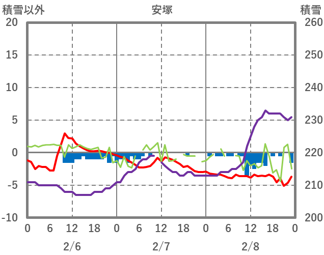 | 日 | 時 | 気温 | 降水 | 風向/風速 | 日照 | 積雪 | 降雪 |