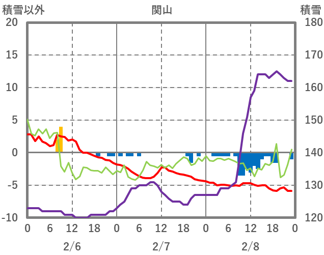 | 日 | 時 | 気温 | 降水 | 風向/風速 | 日照 | 積雪 | 降雪 |