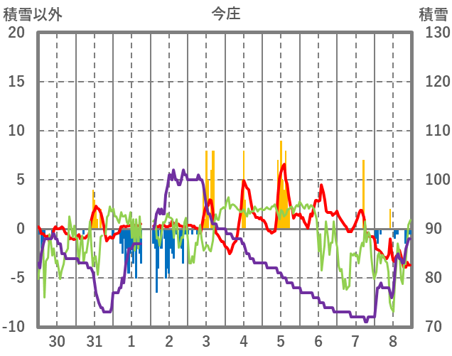 | 日 | 時 | 気温 | 降水 | 風向/風速 | 日照 | 積雪 | 降雪 |