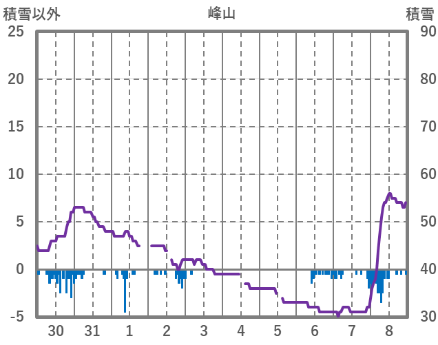 | 日 | 時 | 気温 | 降水 | 風向/風速 | 日照 | 積雪 | 降雪 |