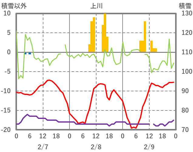 | 日 | 時 | 気温 | 降水 | 風向/風速 | 日照 | 積雪 | 降雪 |