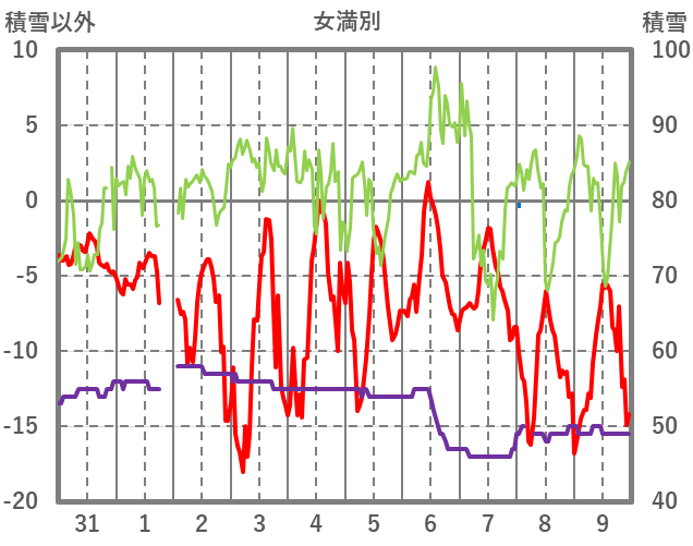 | 日 | 時 | 気温 | 降水 | 風向/風速 | 日照 | 積雪 | 降雪 |