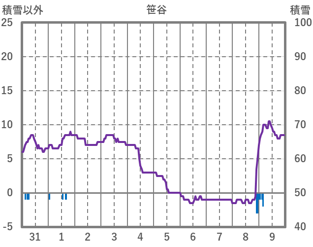 | 日 | 時 | 気温 | 降水 | 風向/風速 | 日照 | 積雪 | 降雪 |