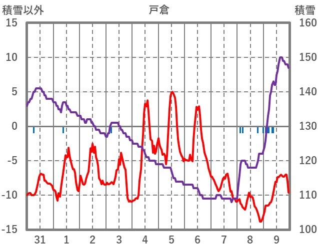 | 日 | 時 | 気温 | 降水 | 風向/風速 | 日照 | 積雪 | 降雪 |