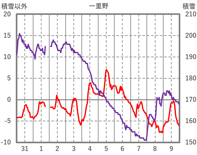 | 日 | 時 | 気温 | 降水 | 風向/風速 | 日照 | 積雪 | 降雪 |