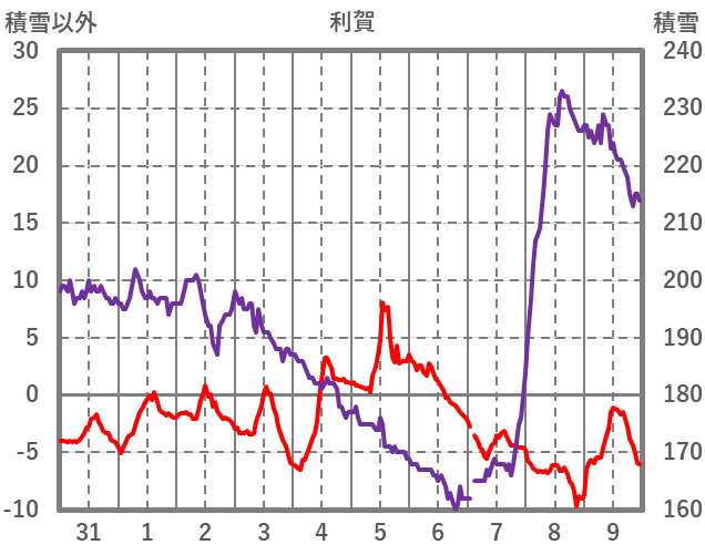 | 日 | 時 | 気温 | 降水 | 風向/風速 | 日照 | 積雪 | 降雪 |