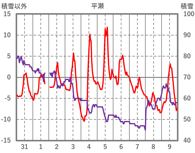 | 日 | 時 | 気温 | 降水 | 風向/風速 | 日照 | 積雪 | 降雪 |