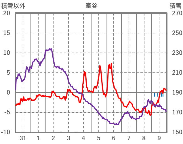 | 日 | 時 | 気温 | 降水 | 風向/風速 | 日照 | 積雪 | 降雪 |