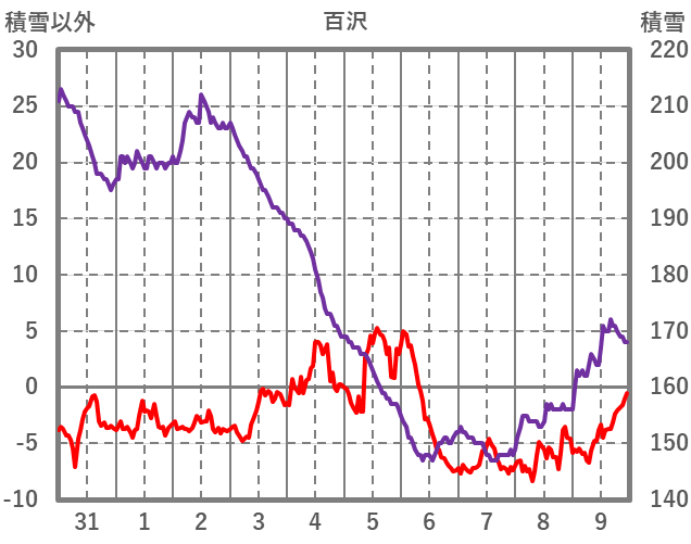 | 日 | 時 | 気温 | 降水 | 風向/風速 | 日照 | 積雪 | 降雪 |
