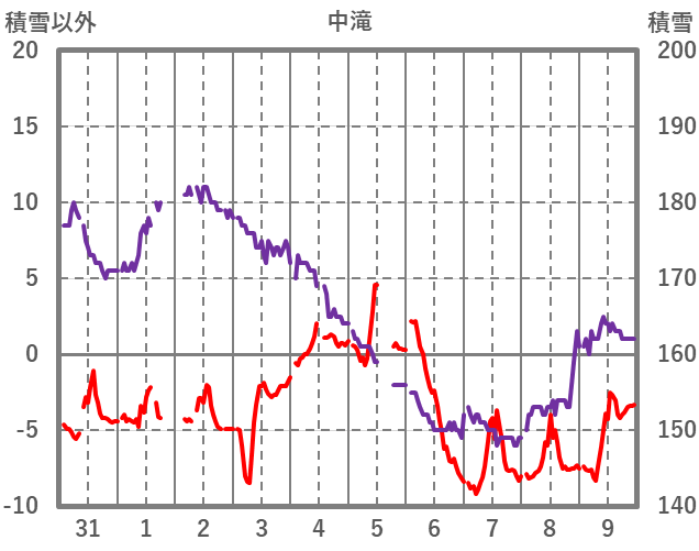 | 日 | 時 | 気温 | 降水 | 風向/風速 | 日照 | 積雪 | 降雪 |