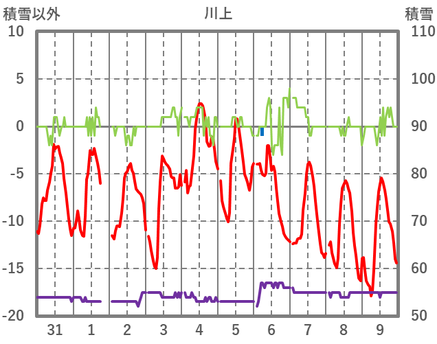 | 日 | 時 | 気温 | 降水 | 風向/風速 | 日照 | 積雪 | 降雪 |