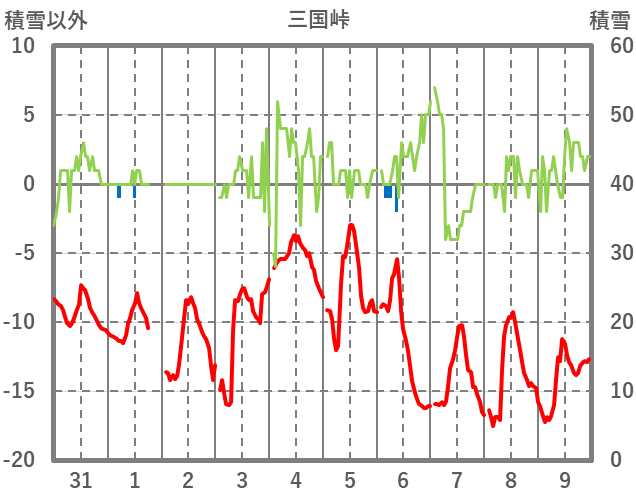 | 日 | 時 | 気温 | 降水 | 風向/風速 | 日照 | 積雪 | 降雪 |