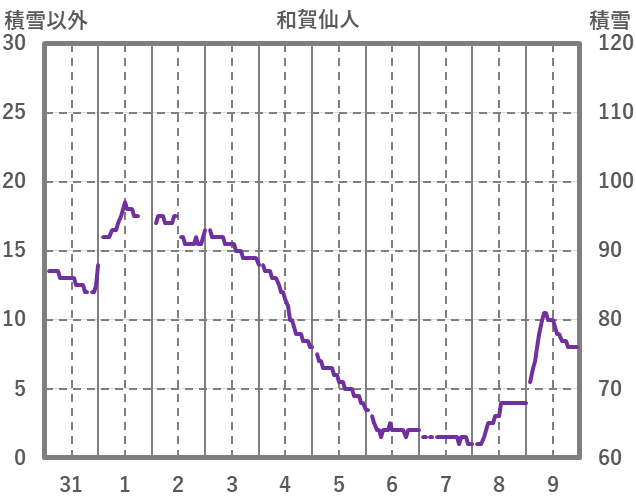 | 日 | 時 | 気温 | 降水 | 風向/風速 | 日照 | 積雪 | 降雪 |