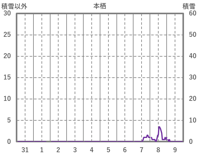 | 日 | 時 | 気温 | 降水 | 風向/風速 | 日照 | 積雪 | 降雪 |