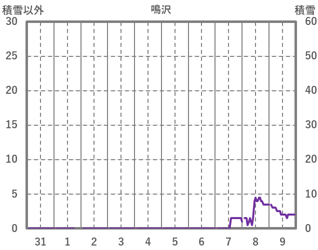 | 日 | 時 | 気温 | 降水 | 風向/風速 | 日照 | 積雪 | 降雪 |