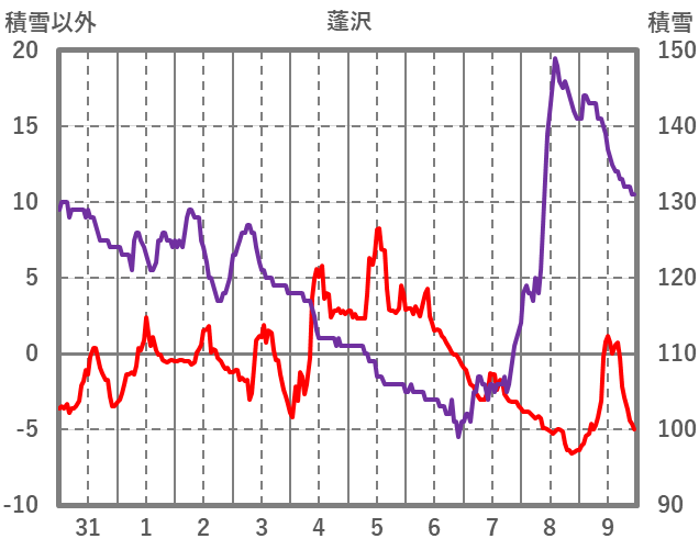 | 日 | 時 | 気温 | 降水 | 風向/風速 | 日照 | 積雪 | 降雪 |
