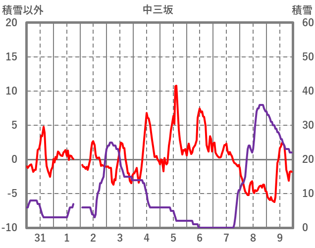 | 日 | 時 | 気温 | 降水 | 風向/風速 | 日照 | 積雪 | 降雪 |