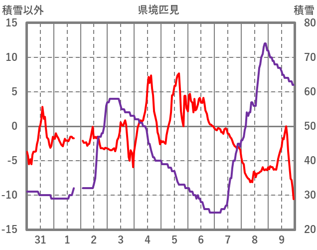 | 日 | 時 | 気温 | 降水 | 風向/風速 | 日照 | 積雪 | 降雪 |