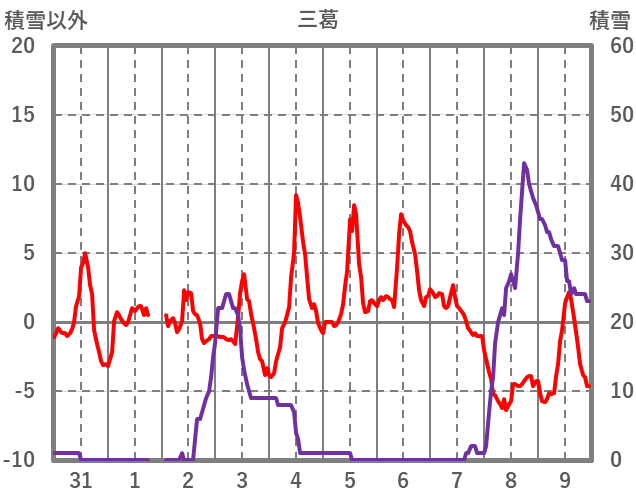 | 日 | 時 | 気温 | 降水 | 風向/風速 | 日照 | 積雪 | 降雪 |