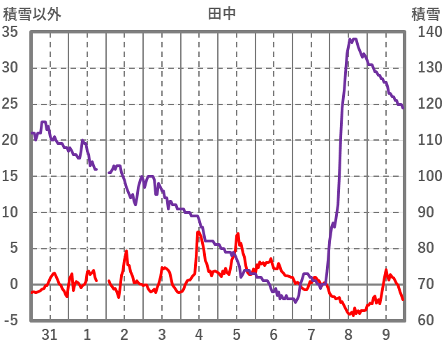 | 日 | 時 | 気温 | 降水 | 風向/風速 | 日照 | 積雪 | 降雪 |