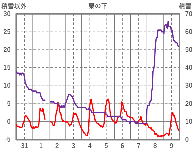 | 日 | 時 | 気温 | 降水 | 風向/風速 | 日照 | 積雪 | 降雪 |