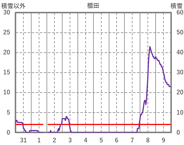 | 日 | 時 | 気温 | 降水 | 風向/風速 | 日照 | 積雪 | 降雪 |