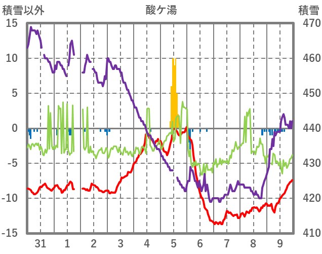 | 日 | 時 | 気温 | 降水 | 風向/風速 | 日照 | 積雪 | 降雪 |
