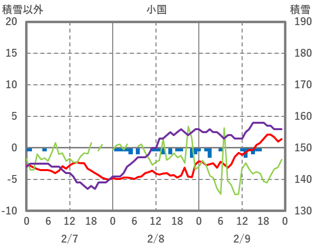 | 日 | 時 | 気温 | 降水 | 風向/風速 | 日照 | 積雪 | 降雪 |
