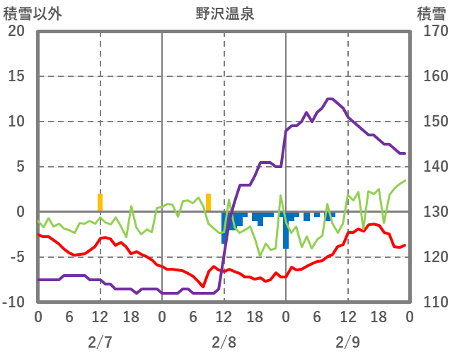 | 日 | 時 | 気温 | 降水 | 風向/風速 | 日照 | 積雪 | 降雪 |
