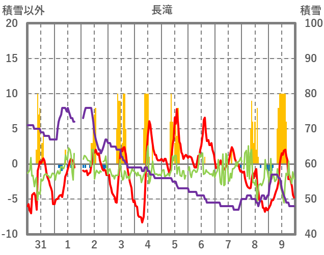 | 日 | 時 | 気温 | 降水 | 風向/風速 | 日照 | 積雪 | 降雪 |