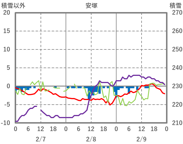| 日 | 時 | 気温 | 降水 | 風向/風速 | 日照 | 積雪 | 降雪 |