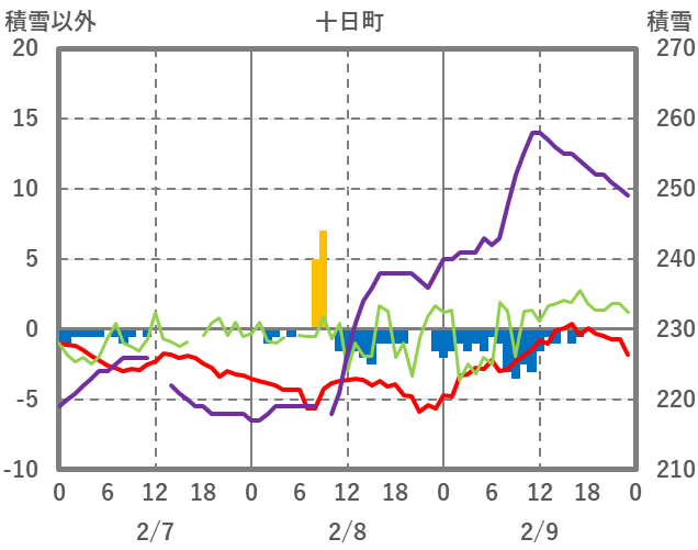 | 日 | 時 | 気温 | 降水 | 風向/風速 | 日照 | 積雪 | 降雪 |