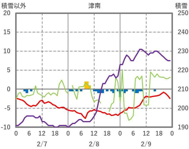 | 日 | 時 | 気温 | 降水 | 風向/風速 | 日照 | 積雪 | 降雪 |