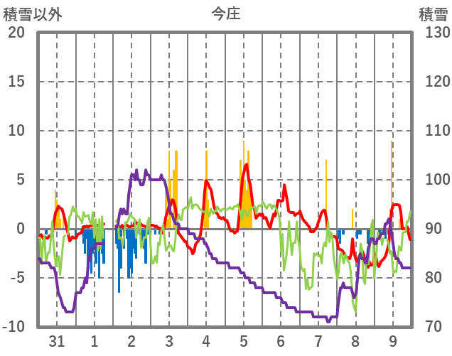 | 日 | 時 | 気温 | 降水 | 風向/風速 | 日照 | 積雪 | 降雪 |