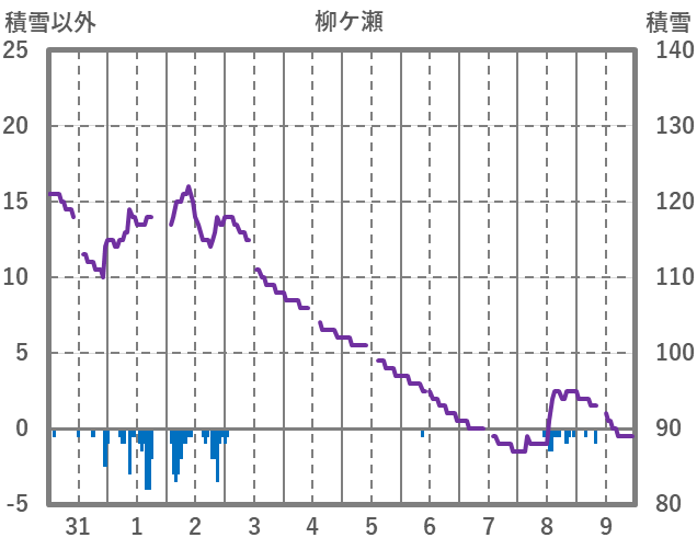 | 日 | 時 | 気温 | 降水 | 風向/風速 | 日照 | 積雪 | 降雪 |