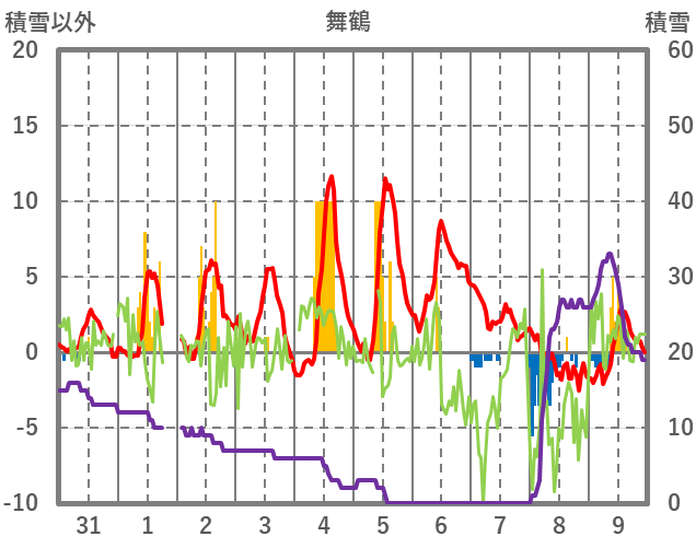 | 日 | 時 | 気温 | 降水 | 風向/風速 | 日照 | 積雪 | 降雪 |