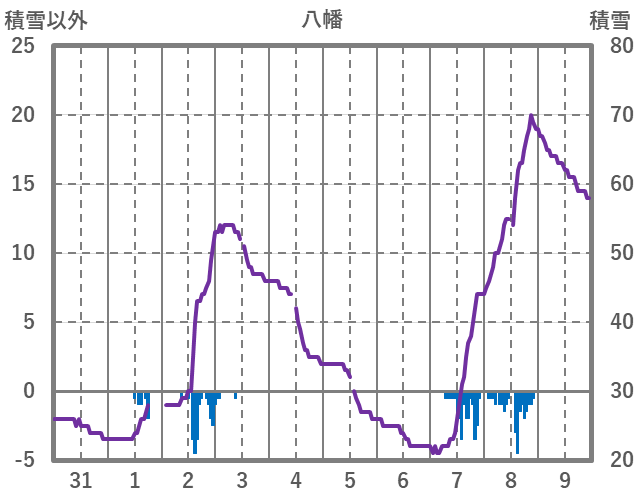 | 日 | 時 | 気温 | 降水 | 風向/風速 | 日照 | 積雪 | 降雪 |