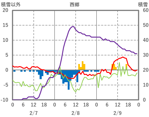 | 日 | 時 | 気温 | 降水 | 風向/風速 | 日照 | 積雪 | 降雪 |