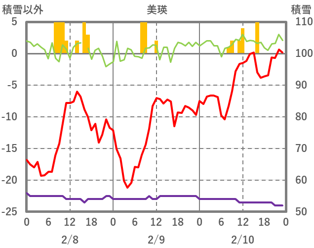 | 日 | 時 | 気温 | 降水 | 風向/風速 | 日照 | 積雪 | 降雪 |
