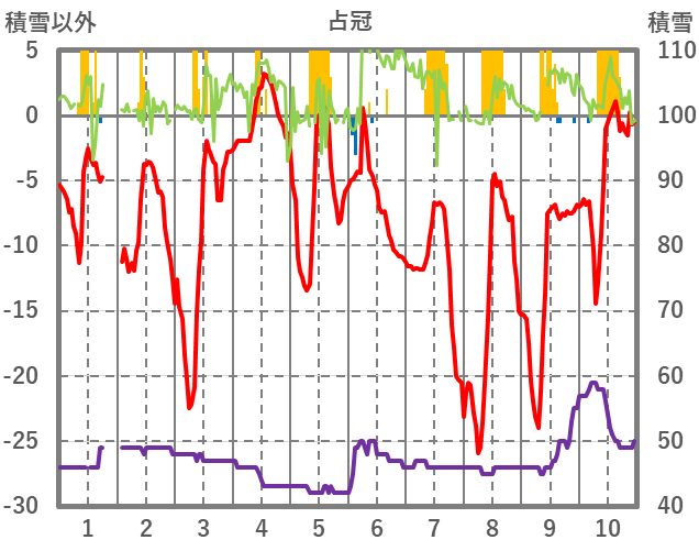 | 日 | 時 | 気温 | 降水 | 風向/風速 | 日照 | 積雪 | 降雪 |