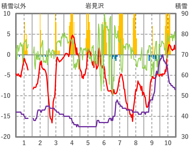 | 日 | 時 | 気温 | 降水 | 風向/風速 | 日照 | 積雪 | 降雪 |